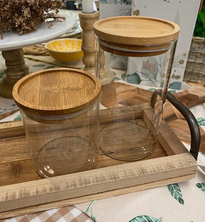 Barattolo in vetro con coperchio ermetico in legno in due misure
