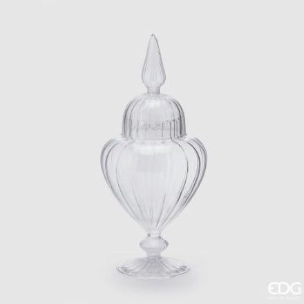 Elegante barattolo/vaso con coperchio per bonbon in vetro soffiato.