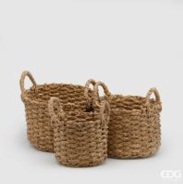 Cestino rotondo con manici in fibra di giunco in tre diverse misure