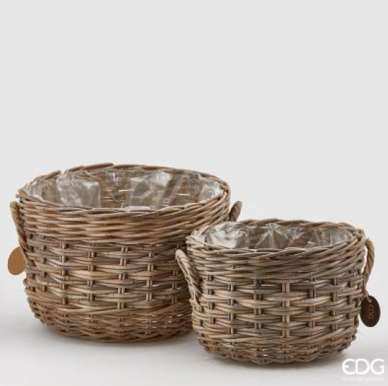 Cesto in rattan foderato con manici in due misure.