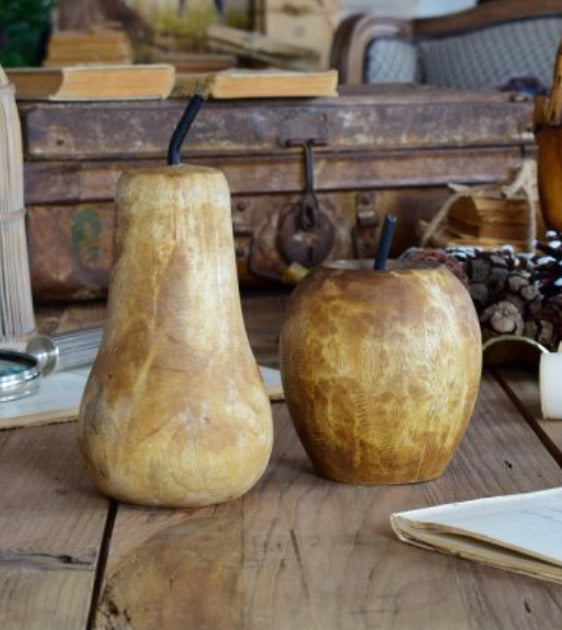 Decorazione in legno a forma di pera o mela, perfette per caratterizzare un ambiente della cucina, aggiungendo quel tocco rustico e di carattere che renderà speciale quel piccolo angolo.