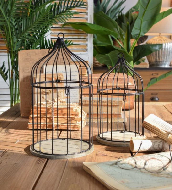 Gabbietta in metallo con base in legno, carinissima per decorare le vostre verande o un angolo di casa, inserendo piantine, candele o altri elementi decorativi e rendere unico ogni angolo di casa.