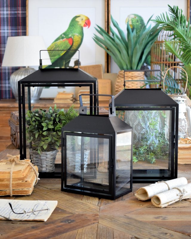 Lanterna in metallo nera, elegante dalle linee essenziali e minimaliste.
