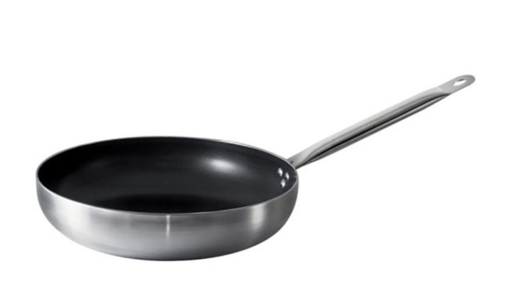 Padella con esterno ed interno in alluminio e manici in acciaio inox.
