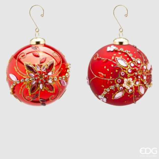 Bellissima pallina con ricco decoro di gemme, perfetta per un albero tradizionale, ricco e luminoso, dove i riflessi delle luci con le pietre preziose creano dei meravigliosi giochi di luce rendendo ancora più prezioso il vostro albero di Natale. Disponibile in due varianti di decoro.