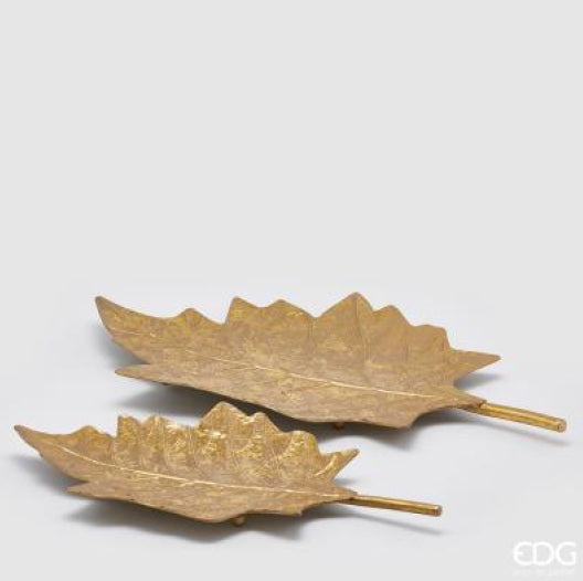 Elegante e raffinato piatto oro a forma di foglia d'acero, elegantissimo centro tavola che può essere utilizzato come base per le vostre candele e la composizione di un perfetto centro tavola natalizio o decorato con lucine e palline per ricreare un'atmosfera magica. E' disponibile in due misure.