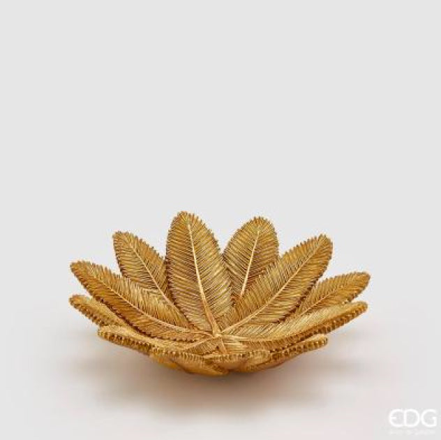 Un elegante vassoio color oro decorato da un insieme di foglie che ne compongono la forma.
