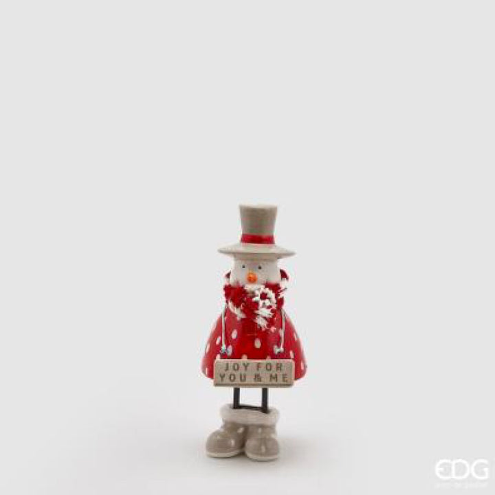 Simpaticissimo pupazzo di neve con cilindro, in ceramica con decoro fantasia.