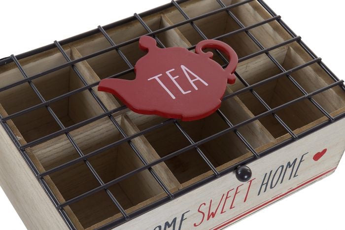Scatola porta bustine infusi, in legno con tappo in metallo "Home Sweet Home", disponibile in due varianti