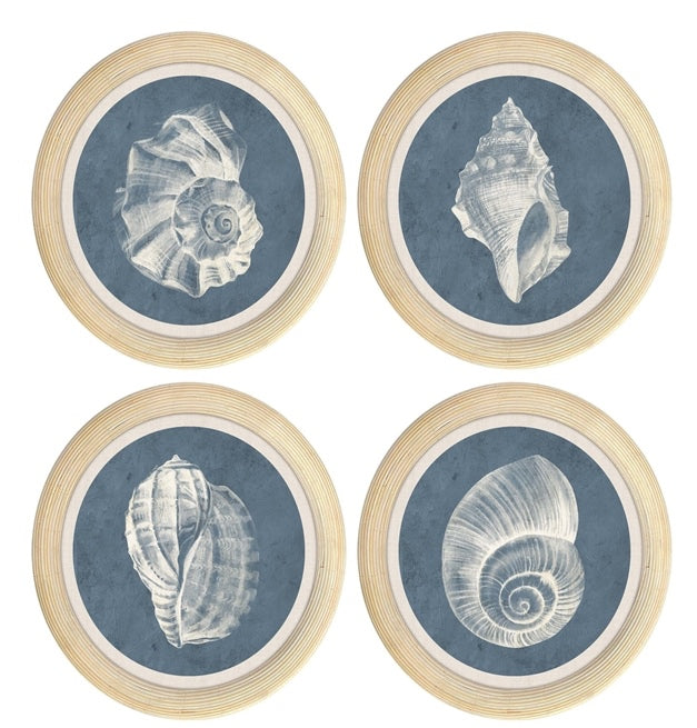 Stampa a tema marino con disegno di diverse tipologie di conchiglie, in 4 varianti assortite.