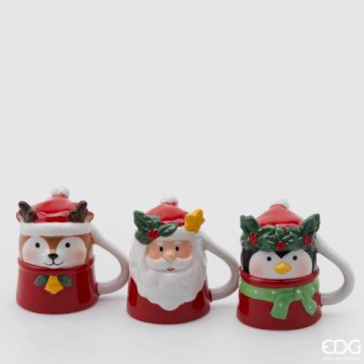 Carinissime tazzine da caffè natalizie assortite con tre diversi personaggi: