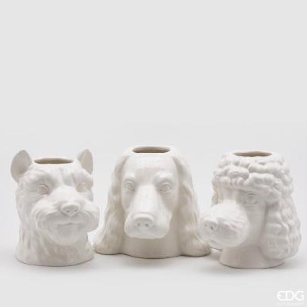 Vasetto dalle sembianze di tre razze di cagnolino, nello specifico dello Schnauzer, del Cocker e del barboncino.