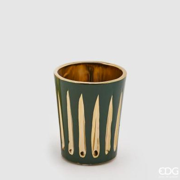 Carinissimo vasetto in ceramica smaltata verde con dettagli oro.